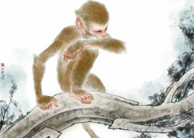 猴子望月(数字国画家 张旺) -